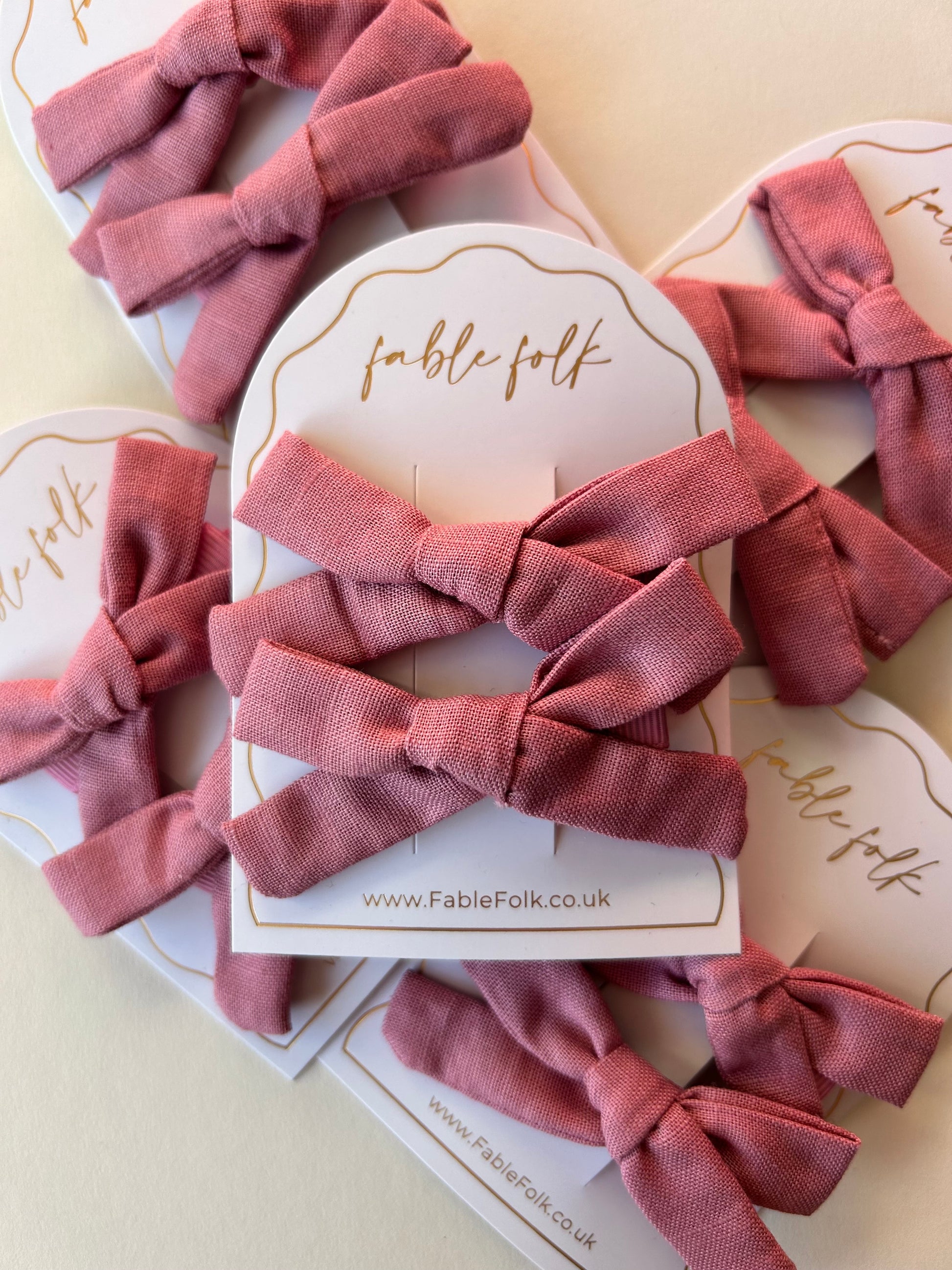 Linen School Girl Bow Clips (2pk) - Blush Pink