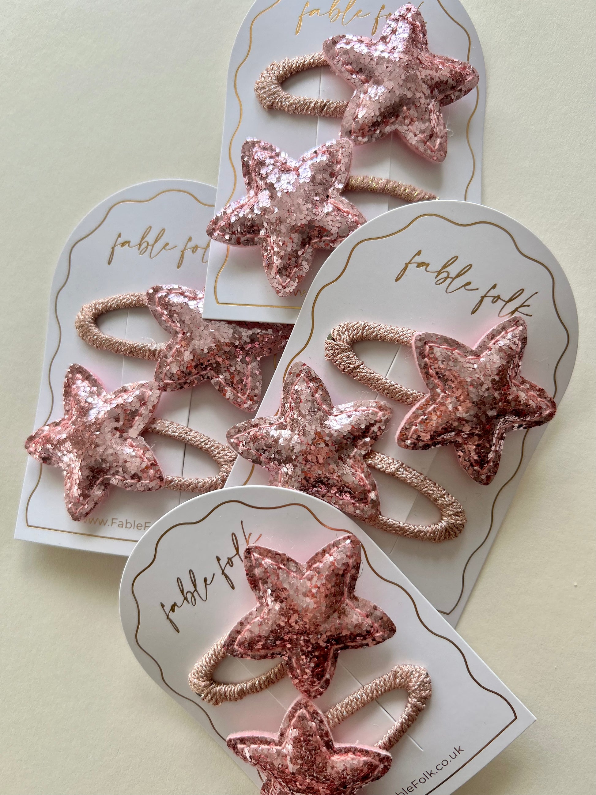 Sparkly Sequin Star Clip Pack Duo In Soft Pink
